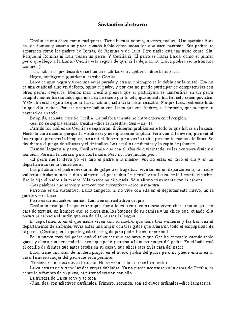 Texto Con Sustantivos Abstractos : Sustantivo Iii Concreto Y Abstracto Pdf